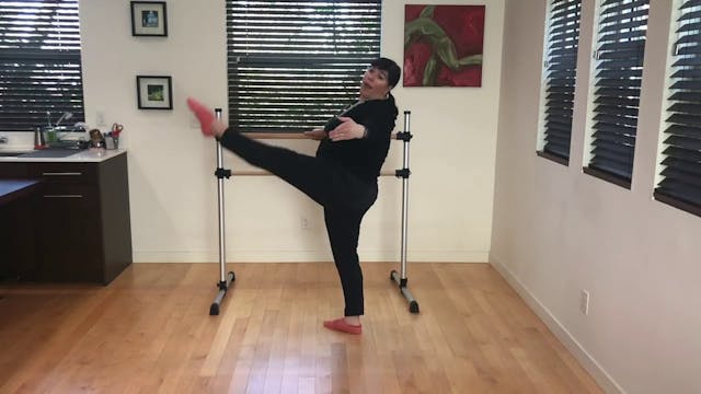 Rond de Jambe translates to "Round of the Leg." Rond de jambe continues to warm up of the body by moving up the leg and finding greater movement of the hip. This is combo 3 and builds on previous combo.